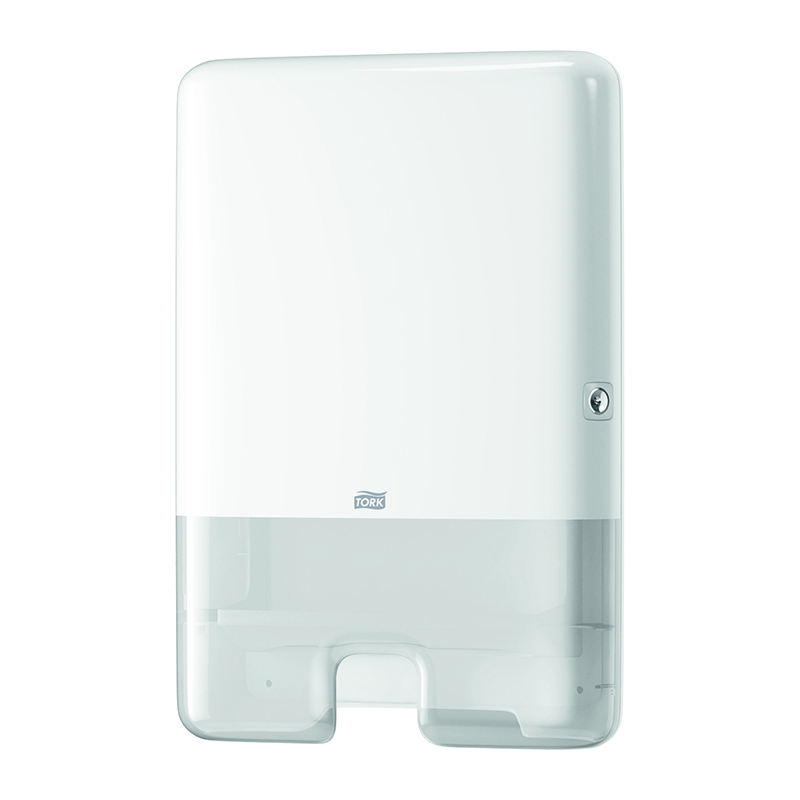 - Dispenseren kan fyldes op, før den er tom, så den aldrig løber tør for papir